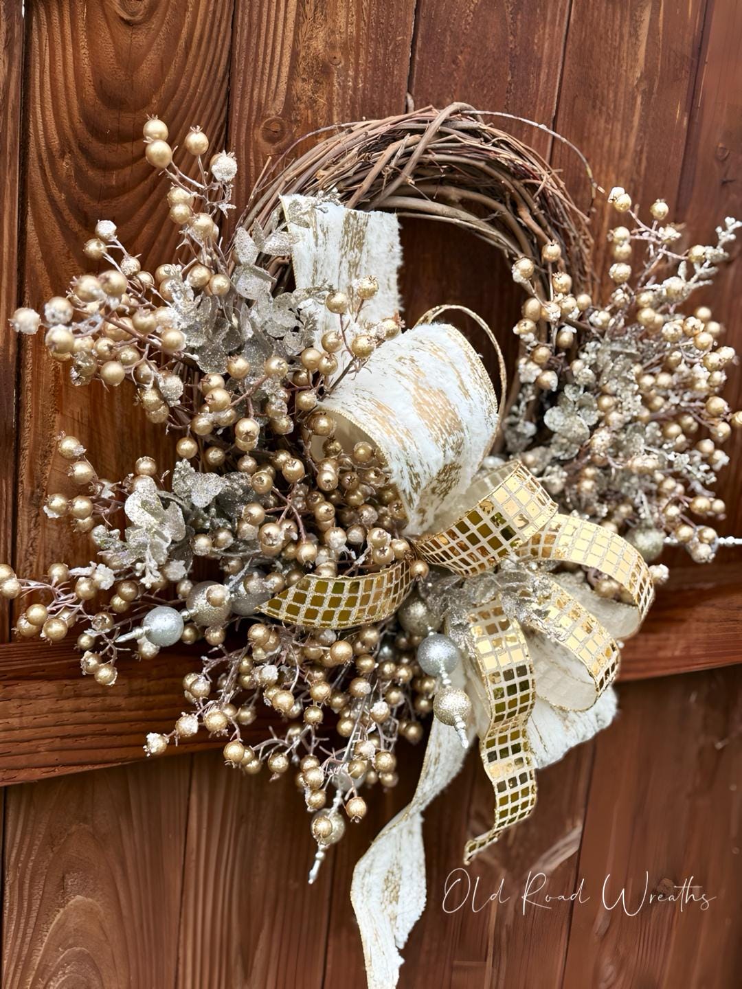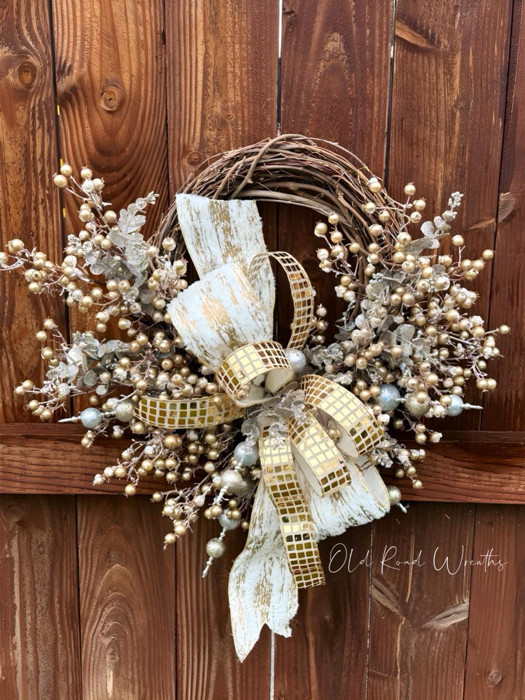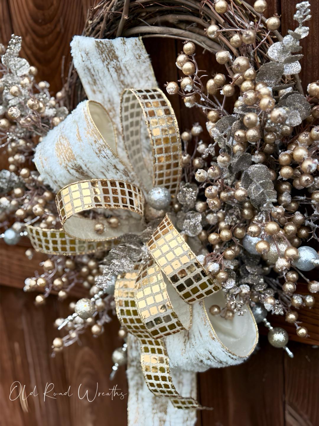 Holiday neutral and amazingly festive wreath. Glitter and gold.